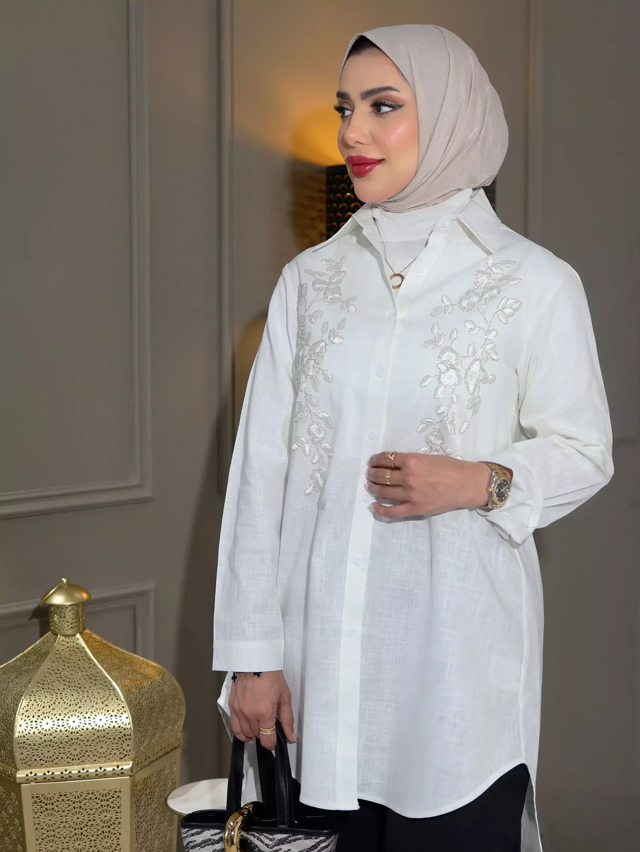 الرئيسيةقميص من قماش اللنن الفاخر - اوف وايت - 4قميص من قماش اللنن الفاخر - اوف وايت - 4بلاك وايت0الوصفقميص نسائي أنيق بتطريز فاخر وشكّ رقيق يضفي لمسة جمالية متألقة على إطلالتك