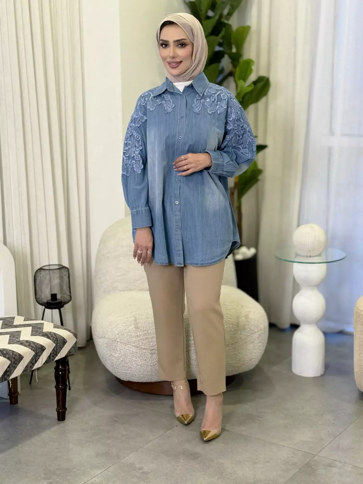 الرئيسيةقميص عصري من خام الجينز - جينز ازرق - FSقميص عصري من خام الجينز - جينز ازرق - FSبلاك وايت0الوصفقميص نسائي عصري من خام الجينز، يتميز بتصميم أنيق مع دانتيل يزين الأكتاف من نفس لون الخام، ليمنحك إطلالة فريدة ومميزة