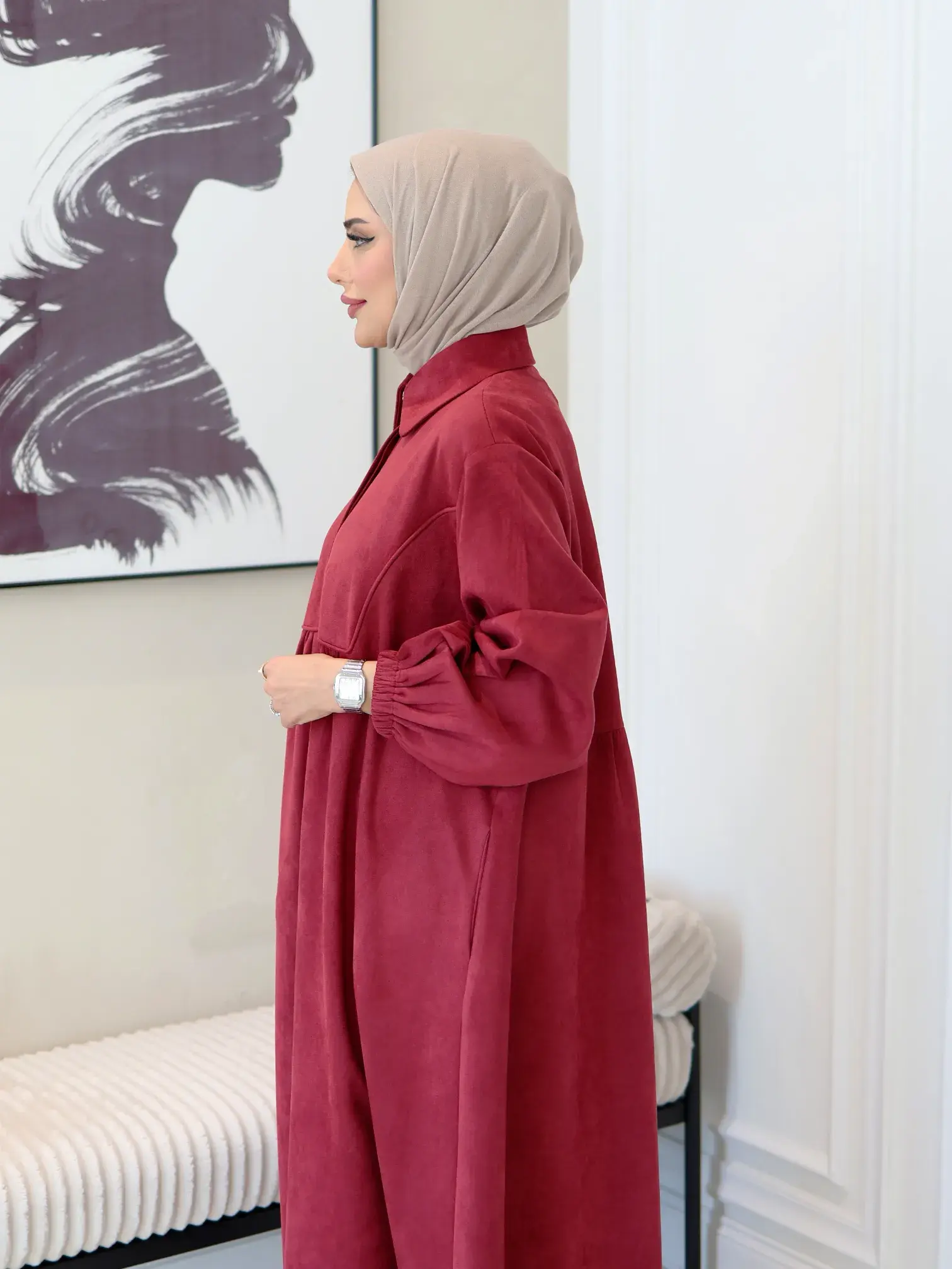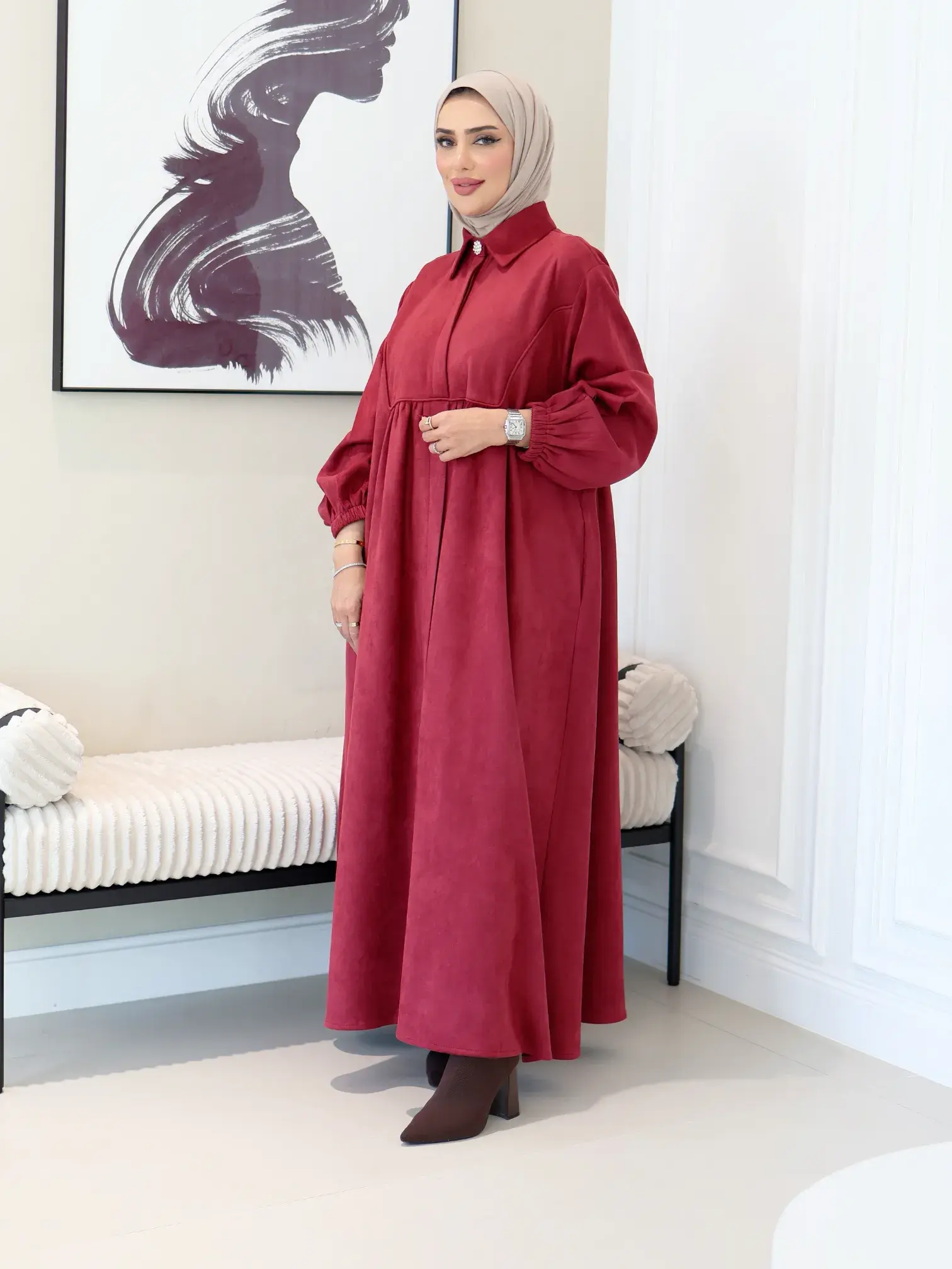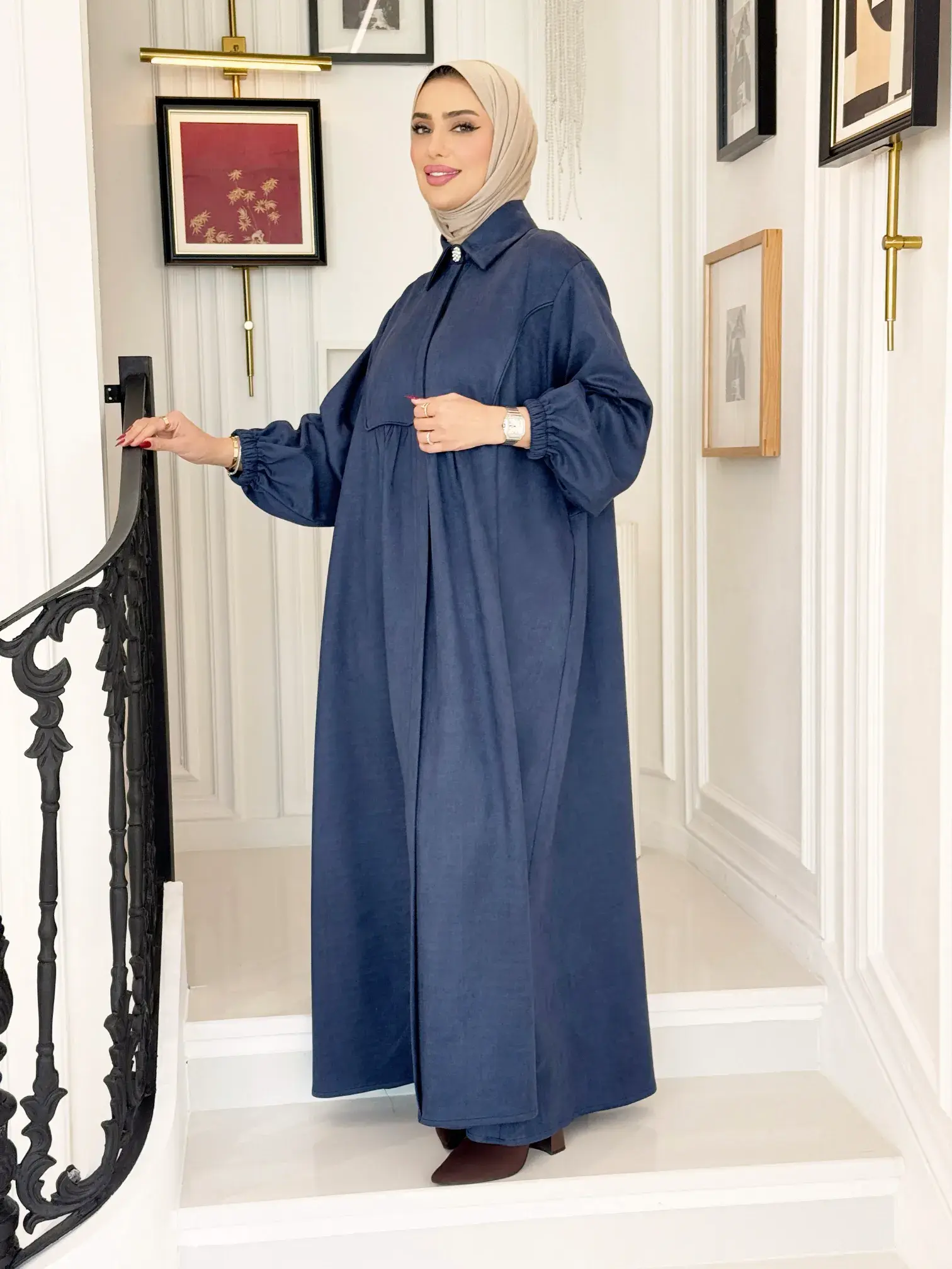 الرئيسيةفستان بتصميم عصريفستان بتصميم عصريبلاك وايت0الوصففستان نسائي أنيق من الشامواه المريح، يتميز بتصميم عصري وبسيط مع زر كرستالة عند الياقة يمنحك إطلالة أنيقة ومريحة في آن واحداللونبيجكحليعنابياسود