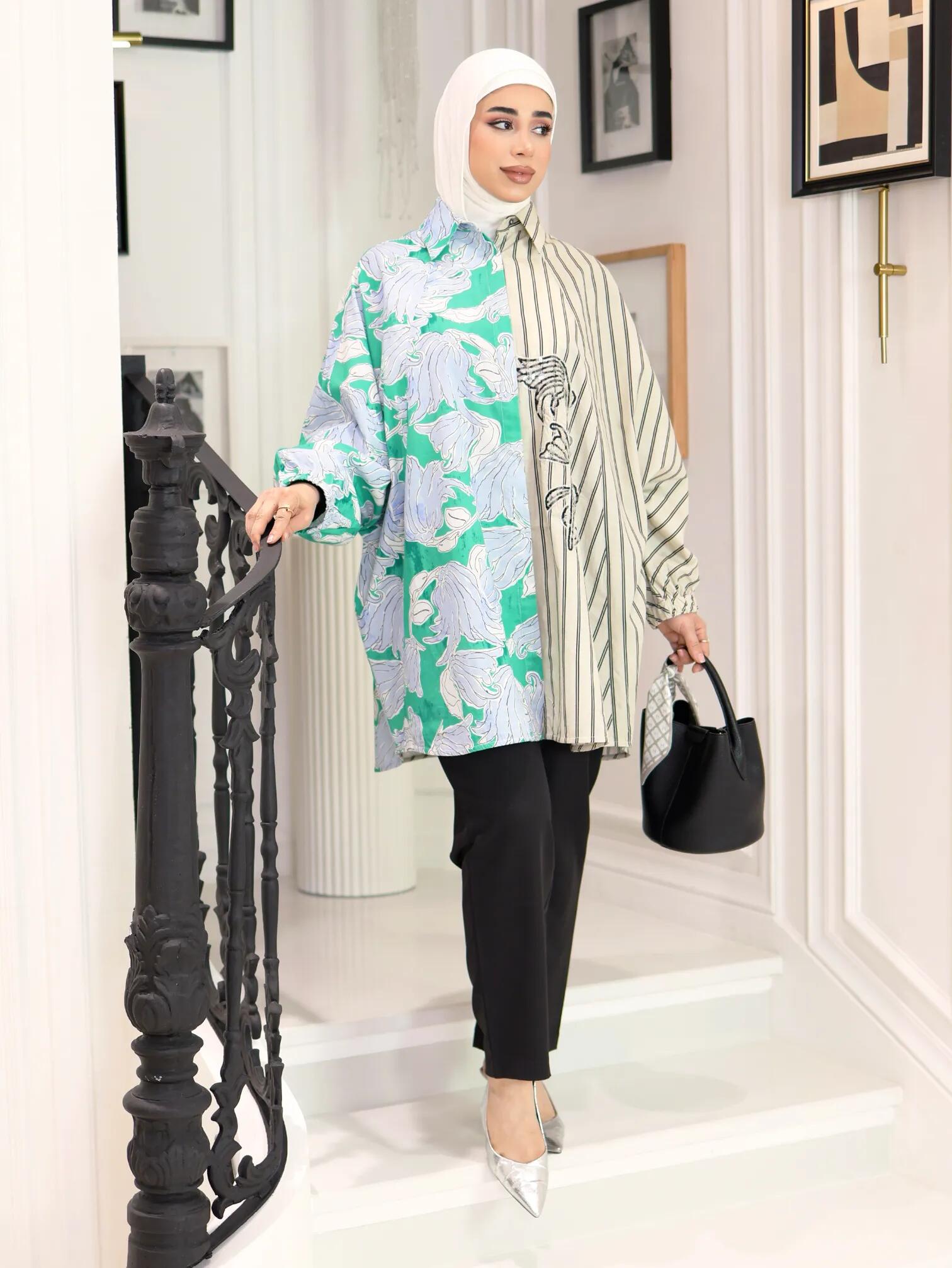 الرئيسيةقميص متعدد الألوان-اخضر-fsقميص متعدد الألوان-اخضر-fsبلاك وايت0الوصفقميص نسائي بتصميم عصري متعدد الألوان من خام القطن المريح، يتميز بأكمام عريضة وتفاصيل فنية متقنة من الورود المصنوعة يدوياً من "الترتل" الأسود والشفاف، ليمنحكِ إطلالة فريدة تجمع بين الحيوية واللمسة الحرفية الفاخرة
