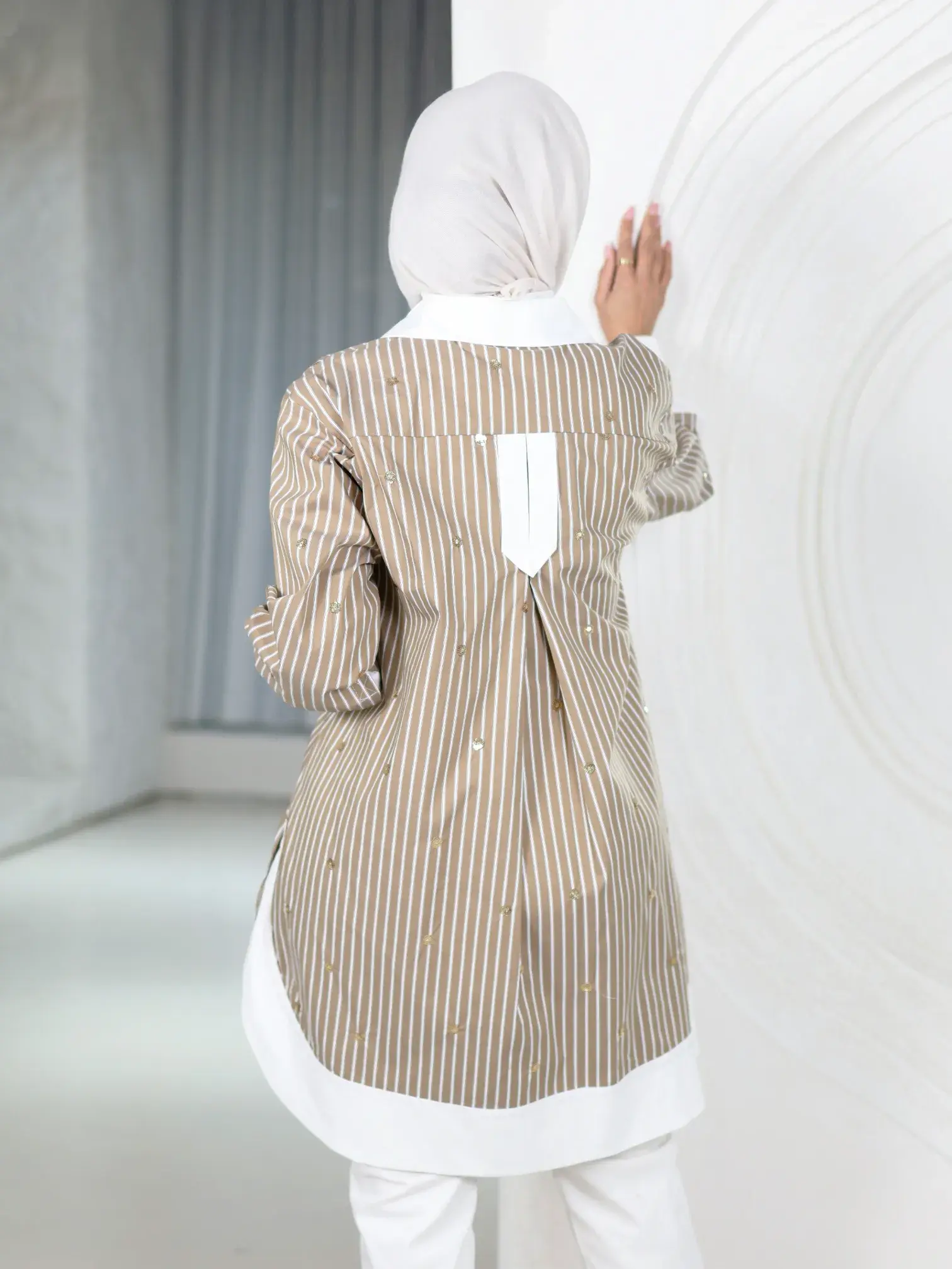 الرئيسيةقميص مزين بالترتر - بني مقلم - 5قميص مزين بالترتر - بني مقلم - 5بلاك وايت0الوصفقميص نسائي خام قطن مقلم مشكوك بترتر، يتميز بتداخل أقمشة متناسق في الياقة والمنتصف. قطعة عصرية تضيف البريق إلى إطلالاتك اليومية بلمسة جذابة⚡ بادر الآن! فقط 3 القطع المتاحة