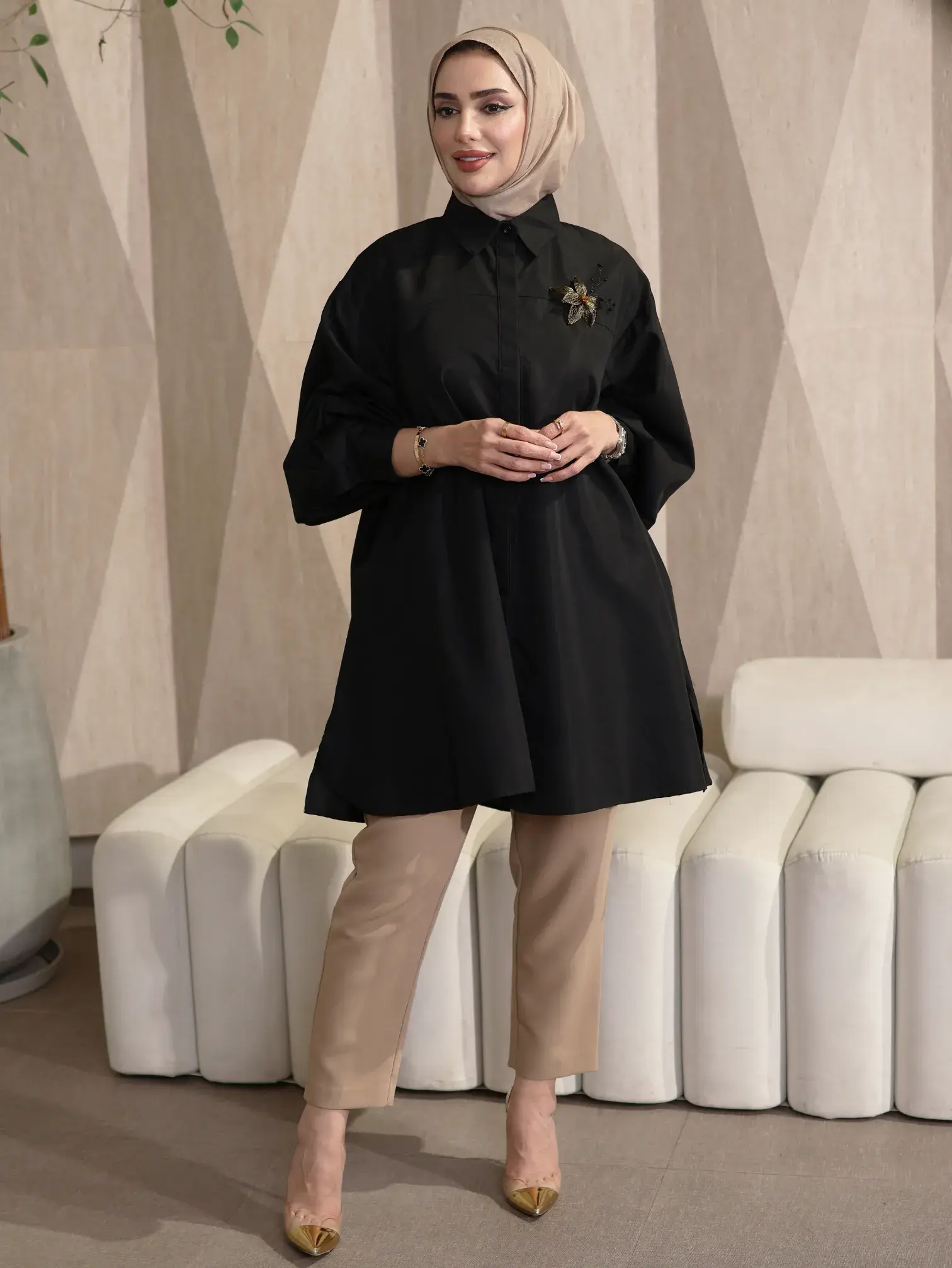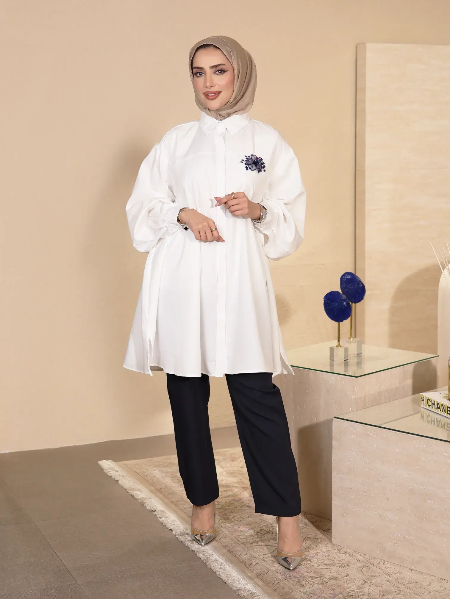 الرئيسيةقميص مع بروشقميص مع بروشبلاك وايت0الوصفقميص نسائي واسع من القطن، مزين ببروش أنيق وكبير قابل للإزالة على الصدر، يضفي لمسة من التميز والأناقة⚡ بادر الآن! فقط 1 القطع المتاحةاللوناوف وايتاسود
