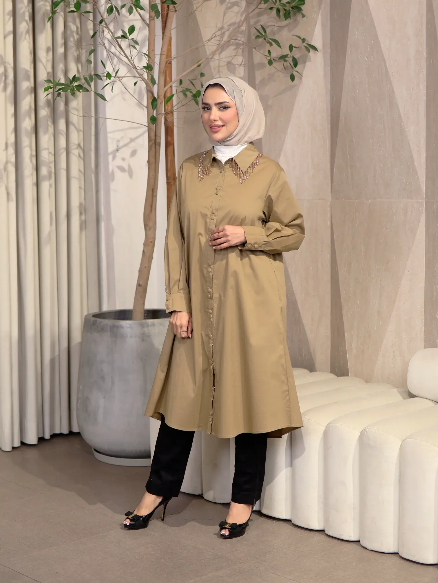 الرئيسيةقميص مع هدب من الكريستالقميص مع هدب من الكريستالبلاك وايت0الوصفقميص نسائي من القطن، يتميز بتصميم أنيق مع هدب من الكريستال يزين الياقة، يضفي لمسة من الفخامة والجمال على إطلالتكاللونعسلياسودالقياس12345