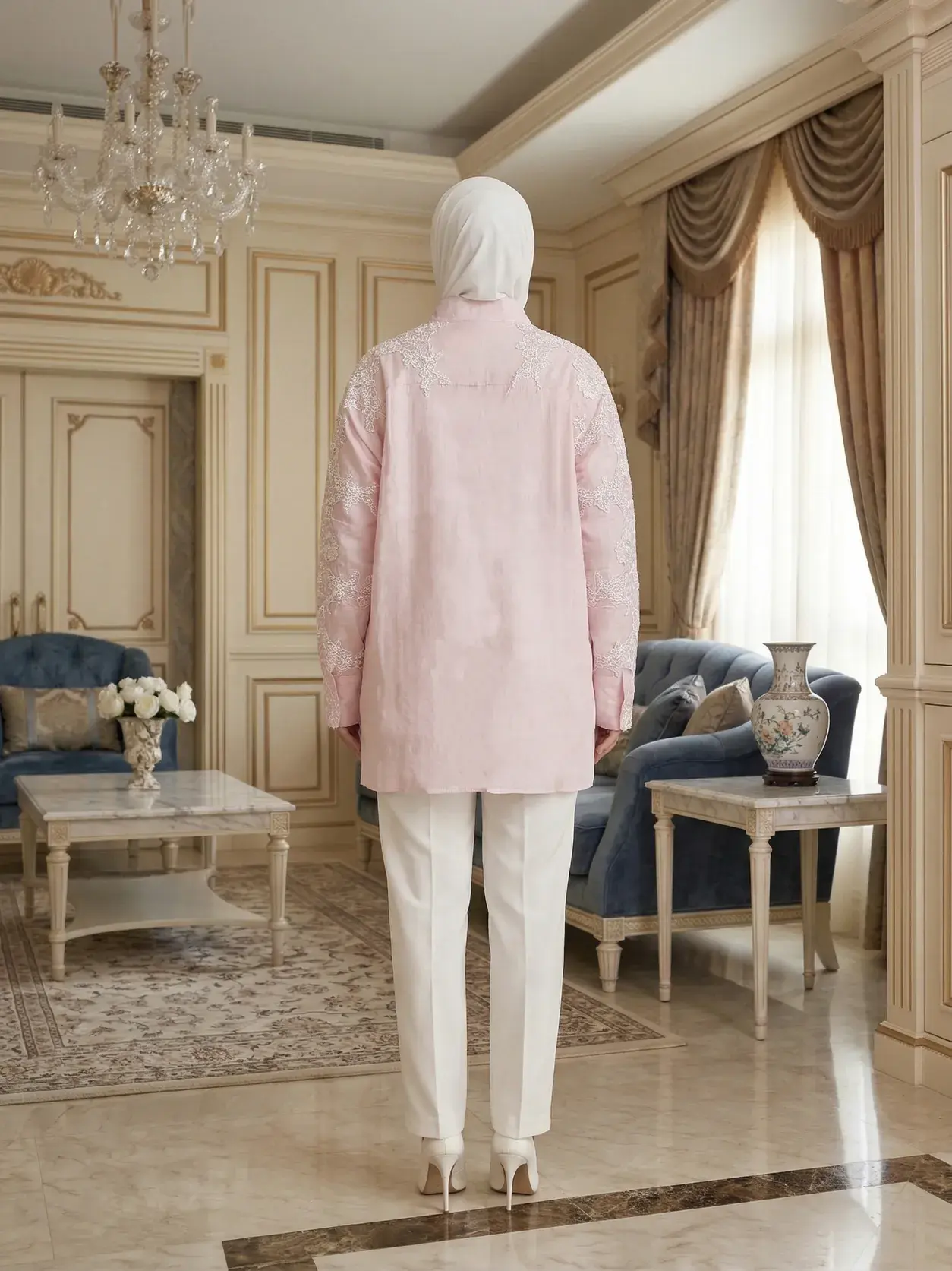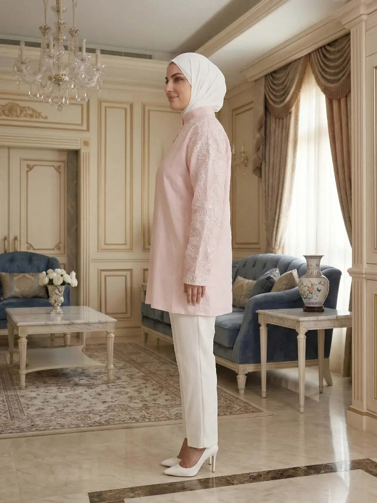 الرئيسيةقميص مع دانتيل - وردي - 1قميص مع دانتيل - وردي - 1بلاك وايت0الوصفقميص نسائي ناعم وأنيق من خام الكريب، يتميز بتصميم فريد مع دانتيل أبيض يزين الكتفين والأكمام، ليمنحك إطلالة راقية ومميزة