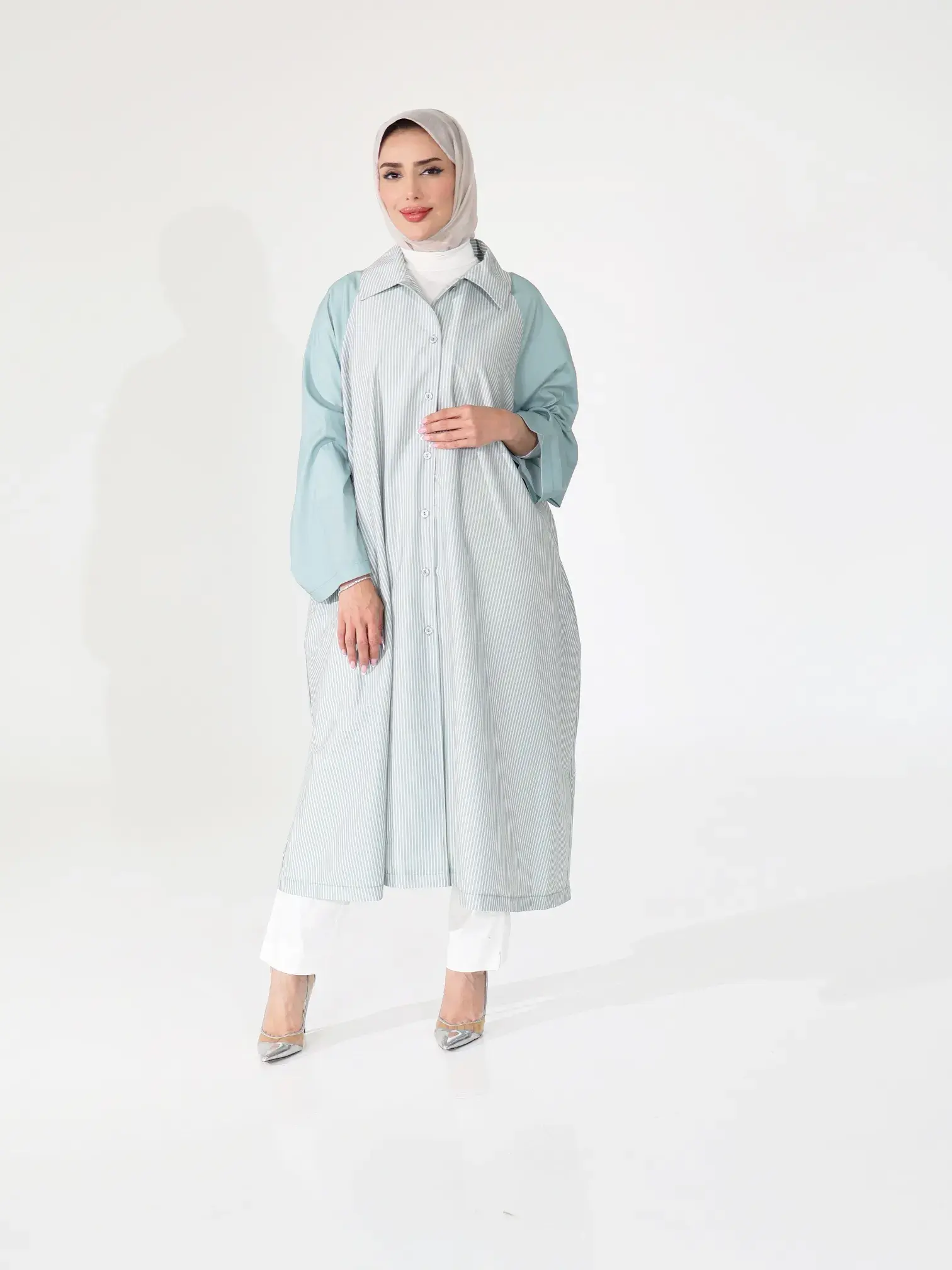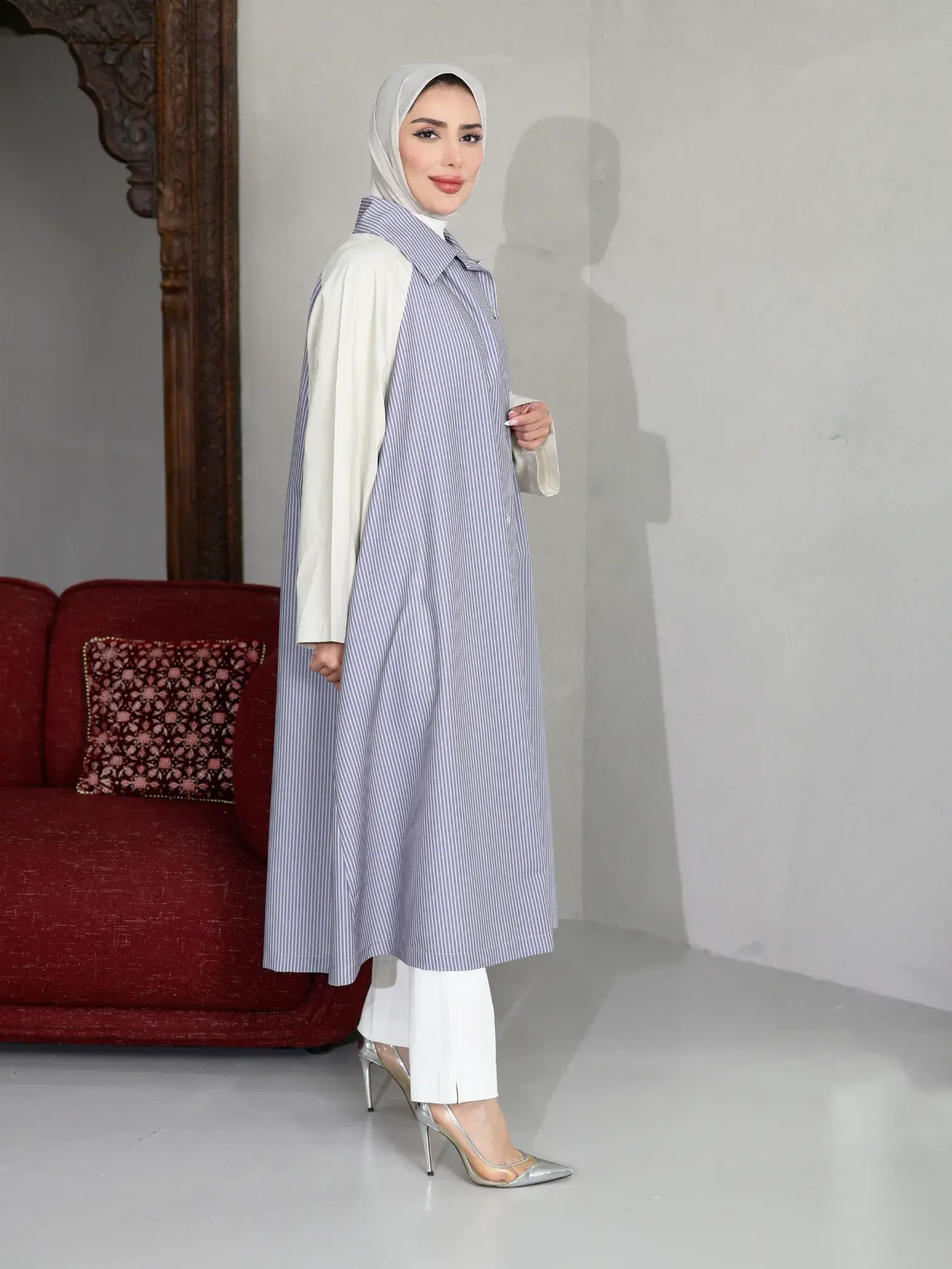 الرئيسيةفستان قصير مخططفستان قصير مخططبلاك وايت0الوصففستان نسائي قصير وواسع من القطن، بتصميم فريد يجمع بين الأجزاء المخططة والسادة، ليمنحك إطلالة عصرية ومتميزةاللونتيفاني مقلمبيج مقلم ازرق