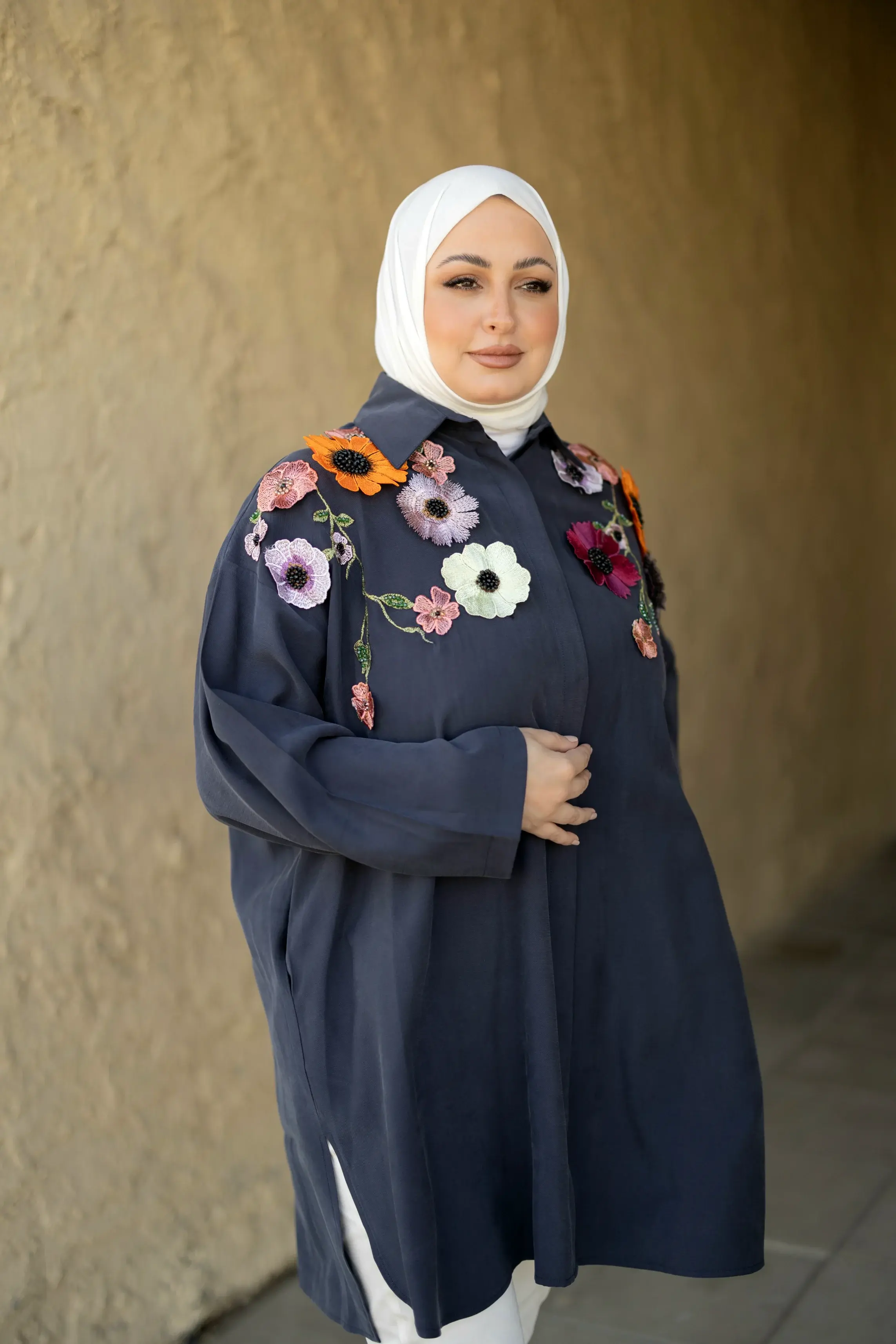 الرئيسيةقميص من قماش التنسل - رمادي غامق - FSقميص من قماش التنسل - رمادي غامق - FSبلاك وايت0الوصفقميص نسائي أنيق من التنسل الناعم، تتفتح على تصميمه ورود ثلاثية الأبعاد ملونة تتخللها لمسات من الشك البراق لتضفي جاذبية عصرية