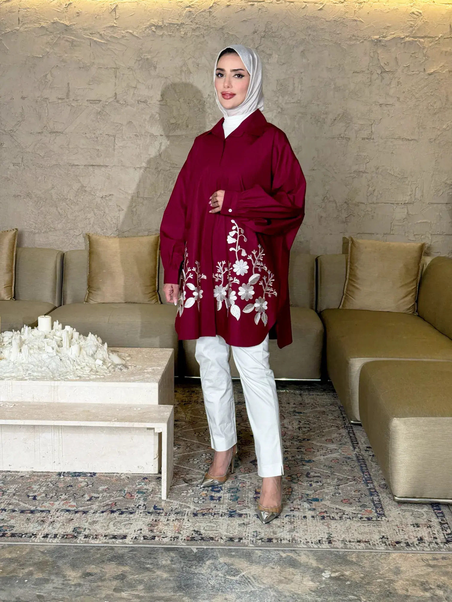 الرئيسيةقميص قطني واسع - عنابي - FSقميص قطني واسع - عنابي - FSبلاك وايت0الوصفقميص نسائي واسع من القطن، يتميز بتطريز يدوي أنيق على شكل حاشية في الأسفل، يضفي لمسة من الأناقة والفخامة