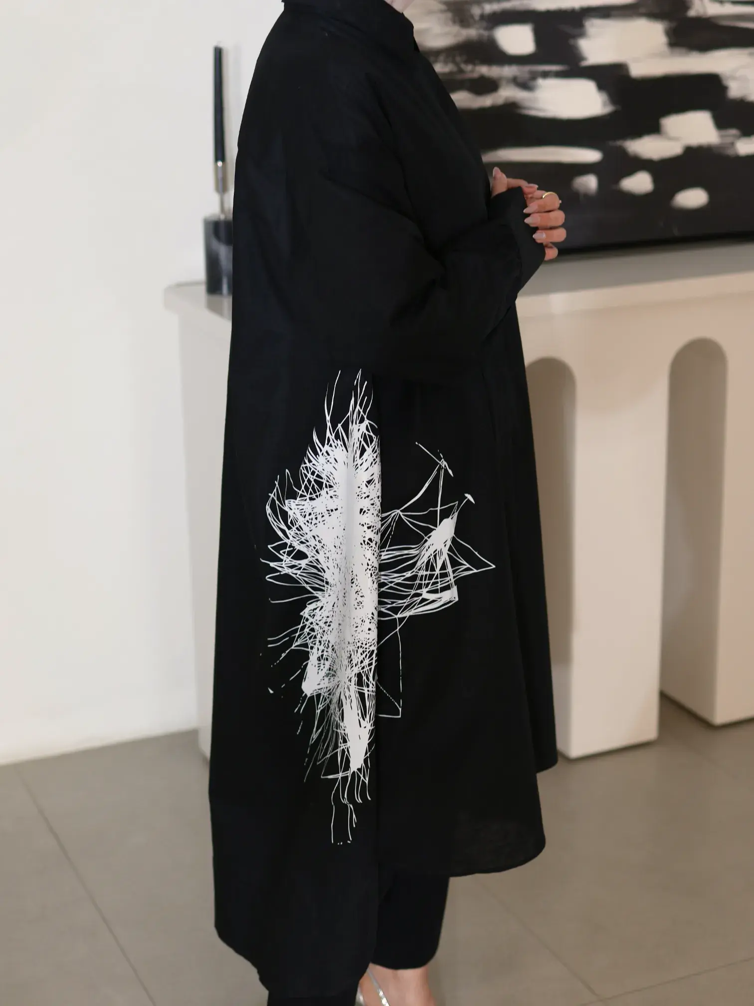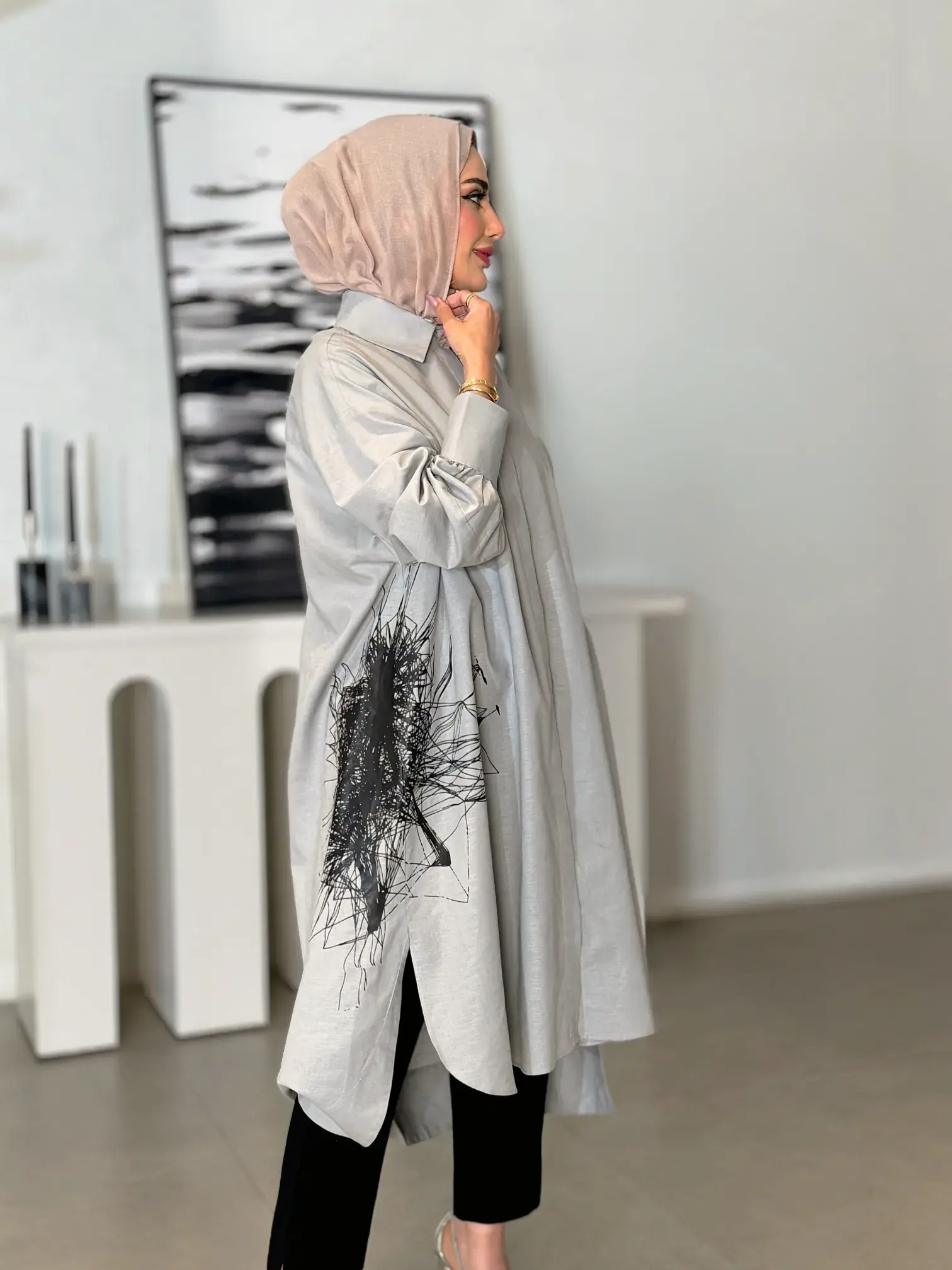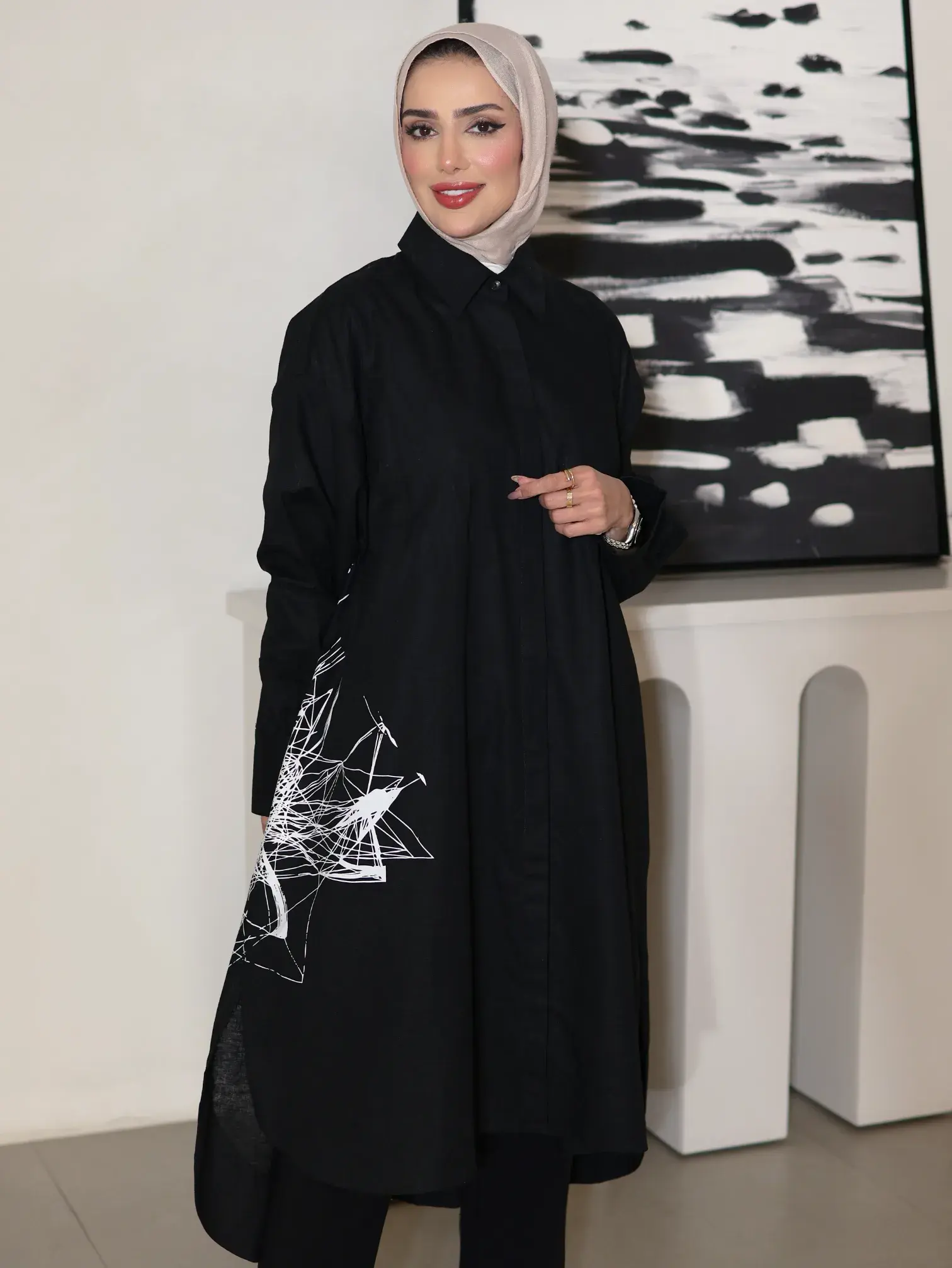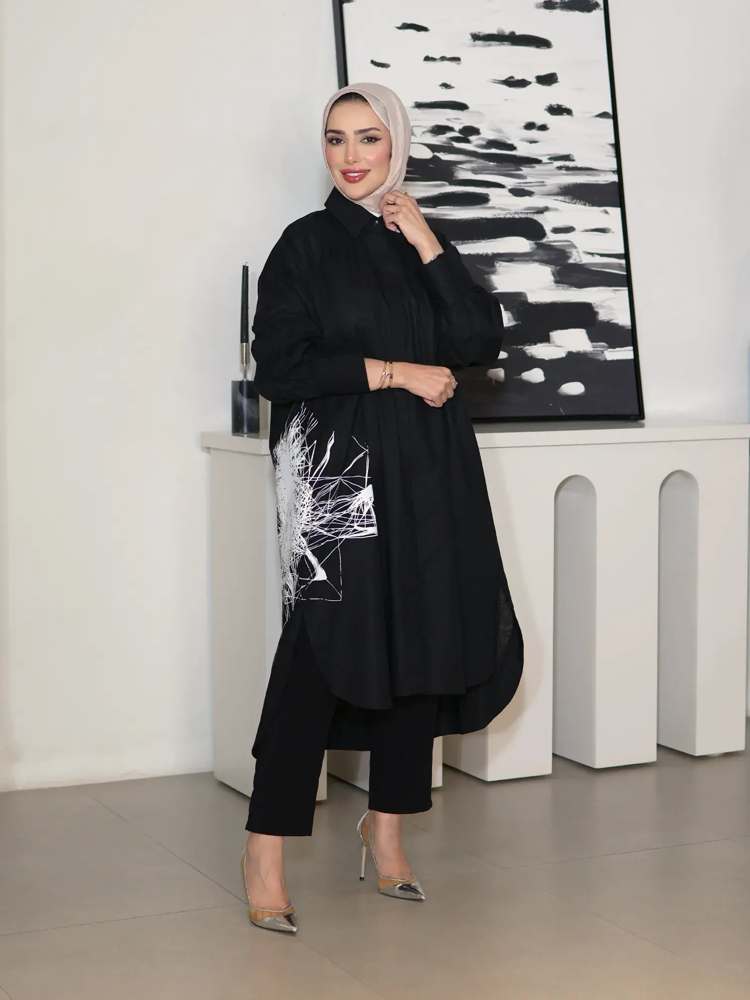 الرئيسيةقميص من اللنن بقصة واسعةقميص من اللنن بقصة واسعةبلاك وايت0الوصفقميص نسائي طويل من خام اللنن بقصة واسعة، يتميز بطبعة فنية تزين جانبه، ليضفي عليك مظهراً أنيقاً ومتفرداًاللونورديرماديبيج غامقاسود