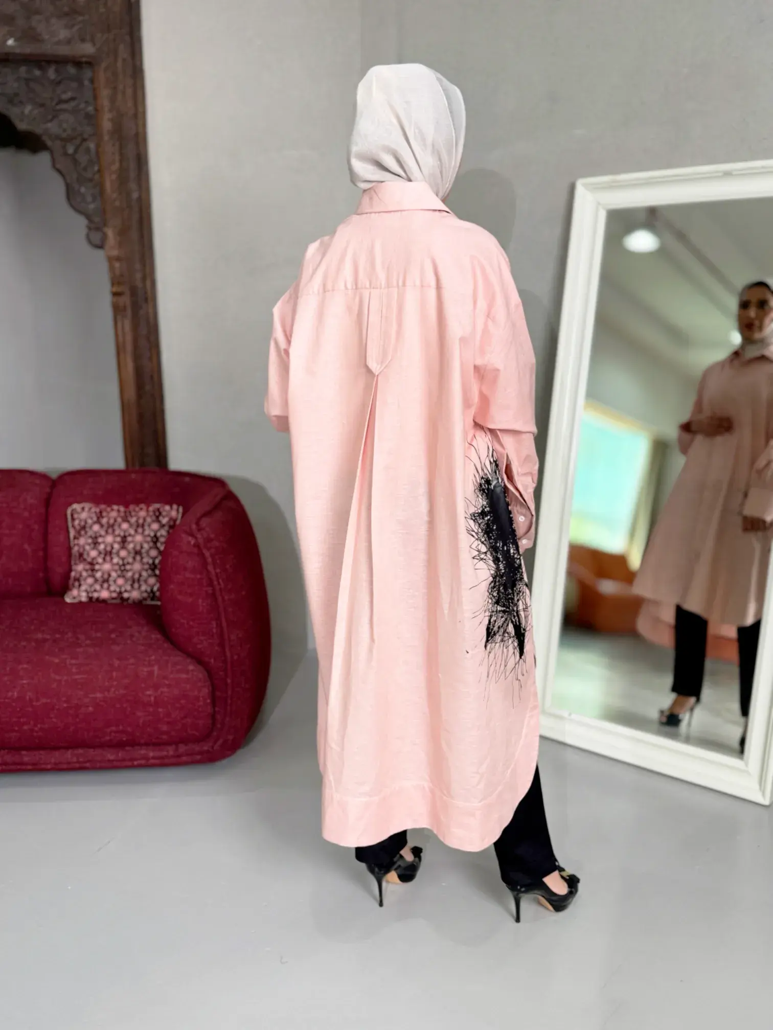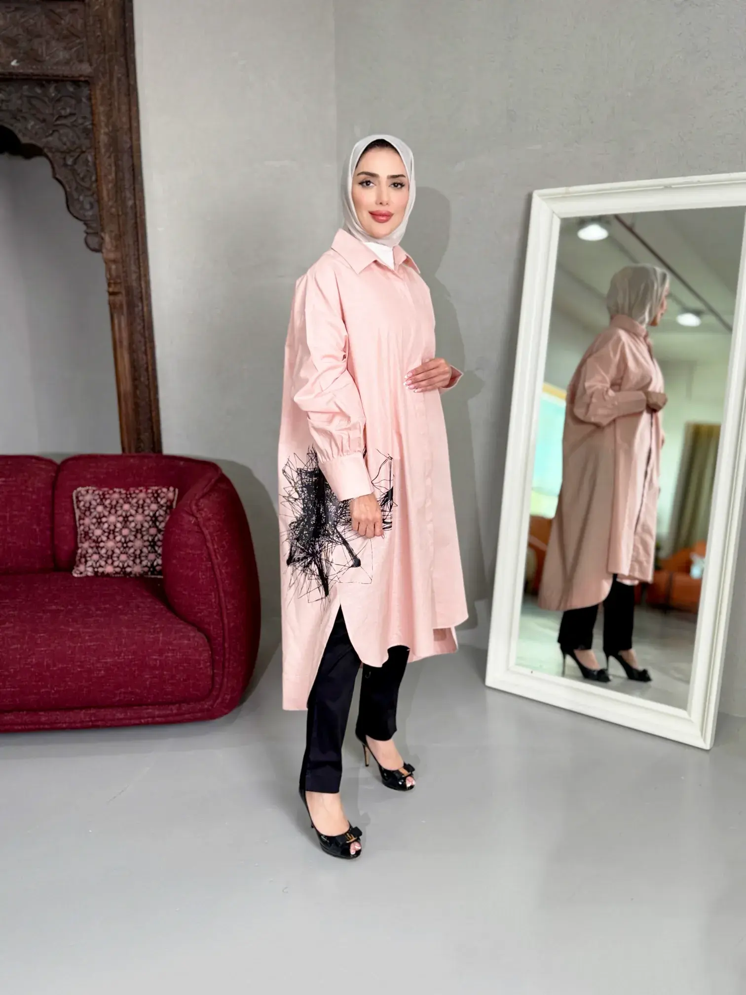 الرئيسيةقميص من اللنن بقصة واسعة - وردي - FSقميص من اللنن بقصة واسعة - وردي - FSبلاك وايت0الوصفقميص نسائي طويل من خام اللنن بقصة واسعة، يتميز بطبعة فنية تزين جانبه، ليضفي عليك مظهراً أنيقاً ومتفرداً
